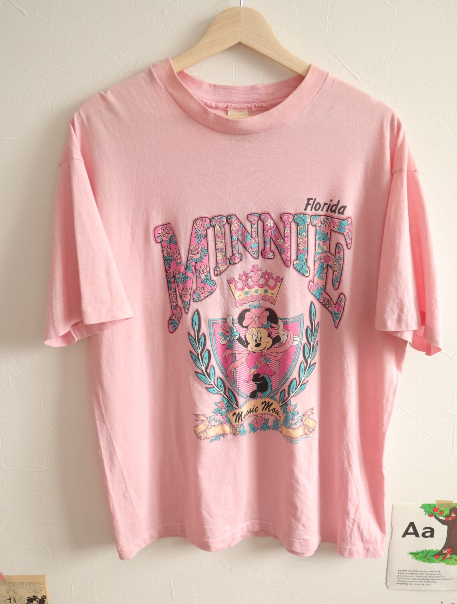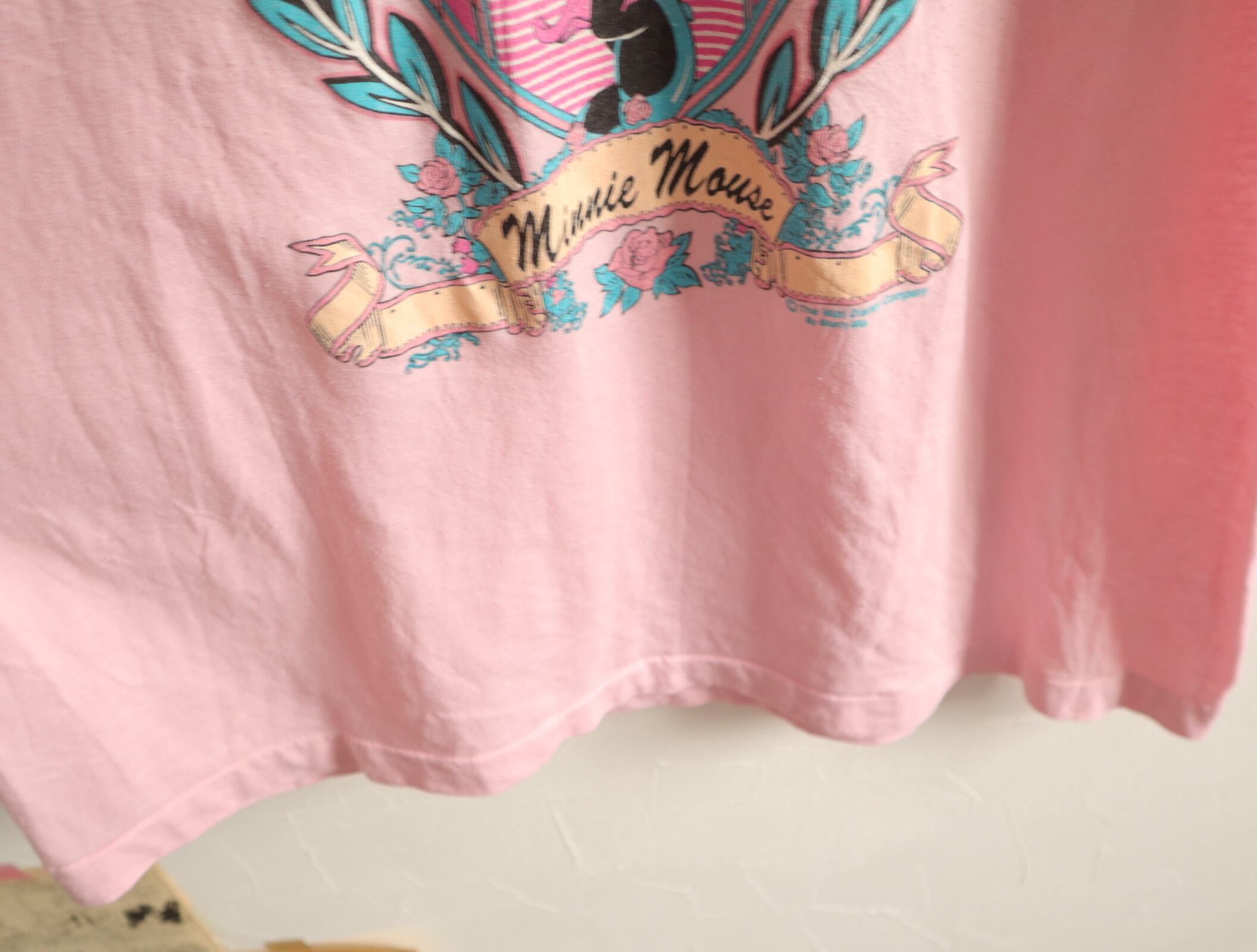 くすみピンクに元気なミニーちゃんがかわいいTシャツです。
