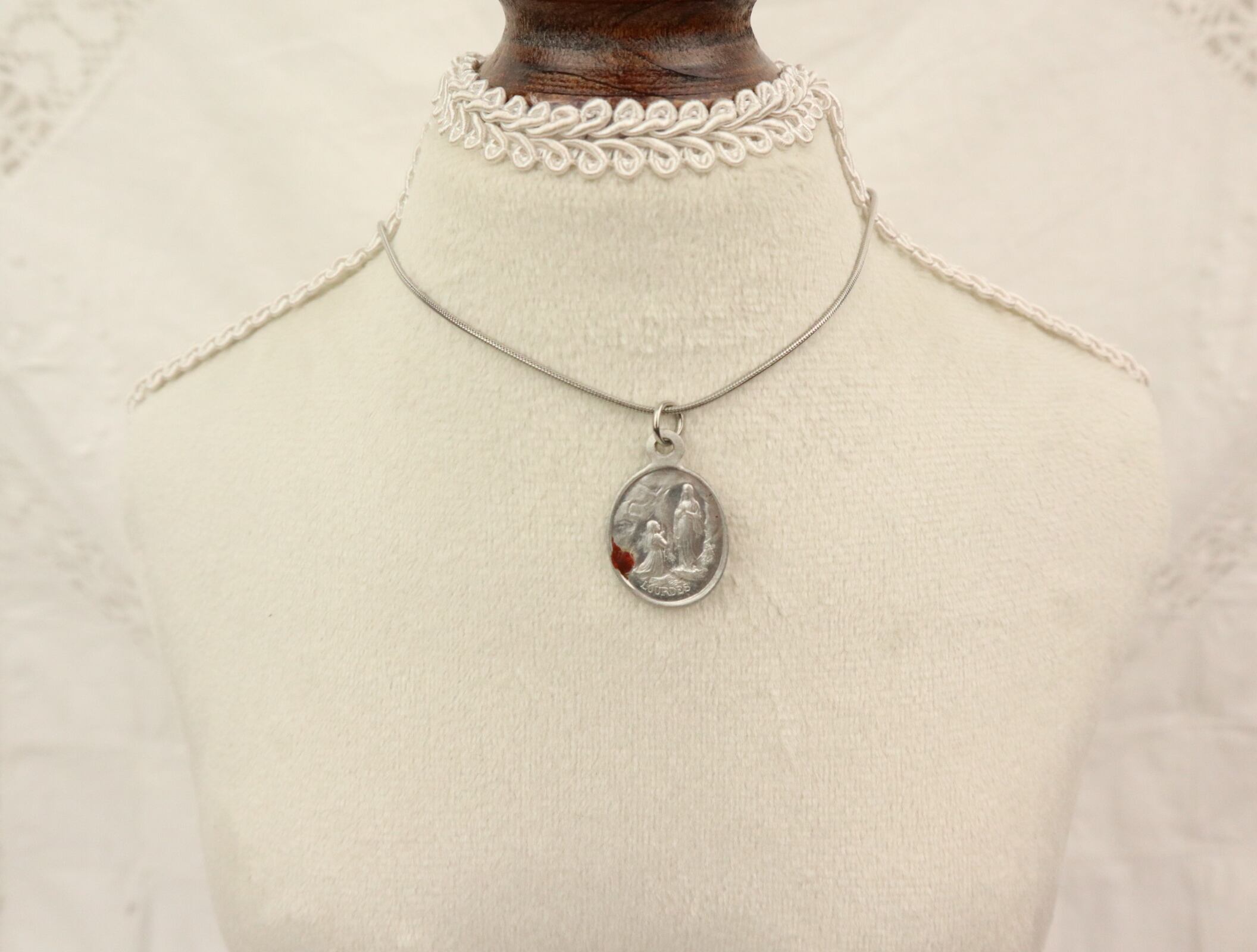 ペンダントトップのメダイはおそらくアルミ製と思います。(100%言い切れません…すみません)