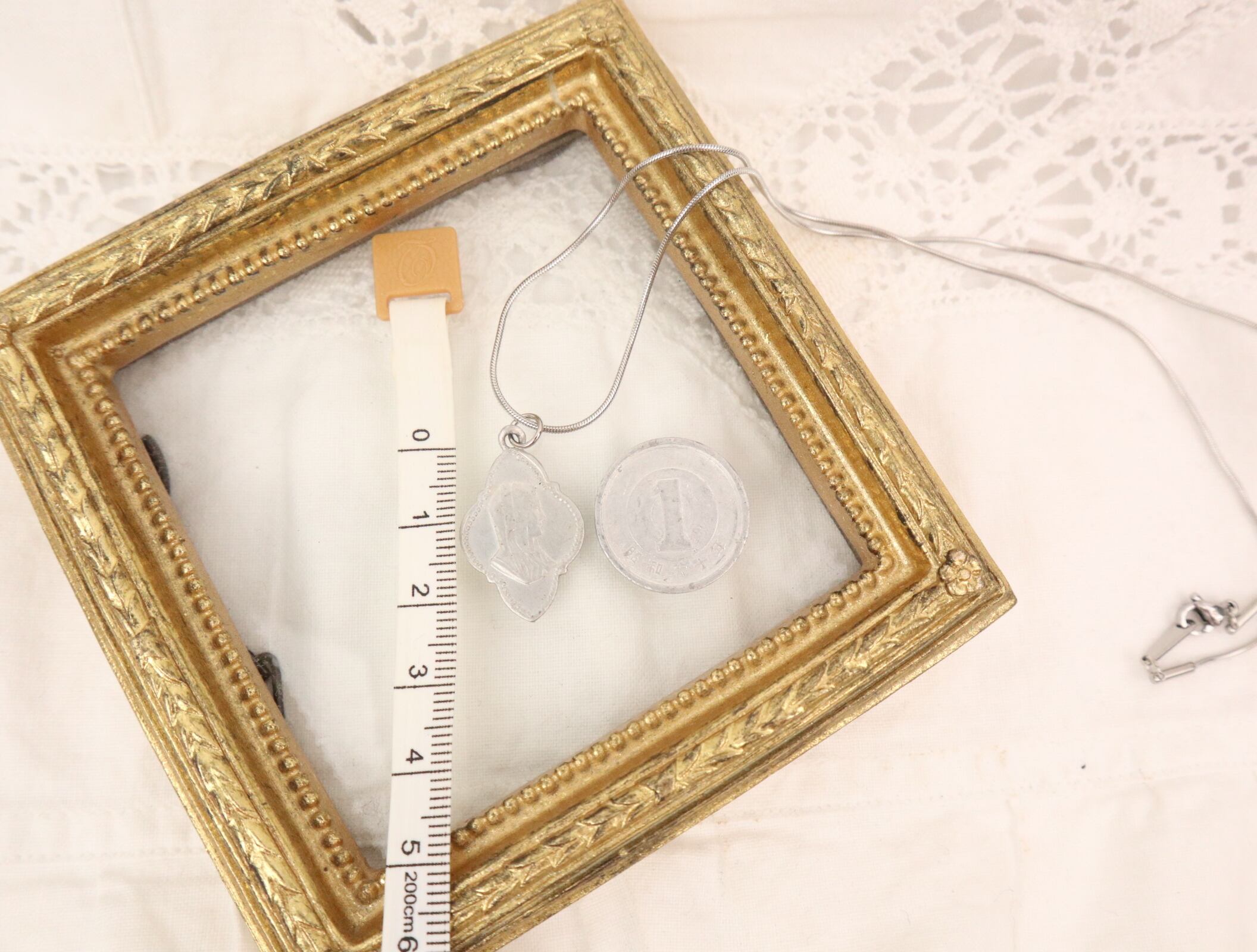 ペンダントトップのメダイはおそらくアルミ製と思います。(100%言い切れません…すみません)