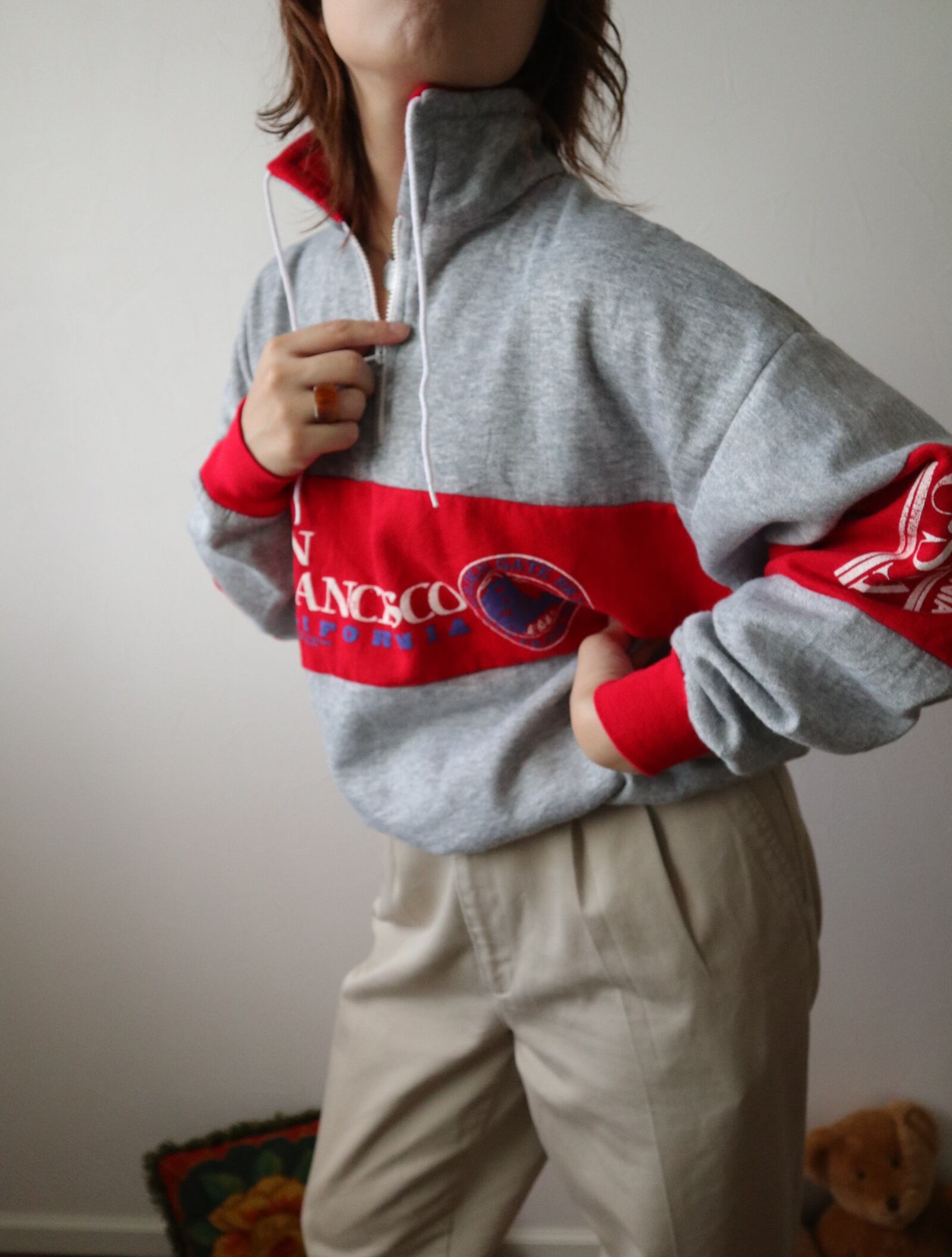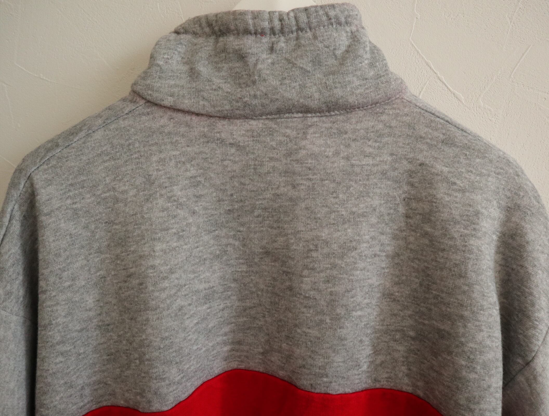 赤とグレーの配色がかわいいスウェットパーカーです。