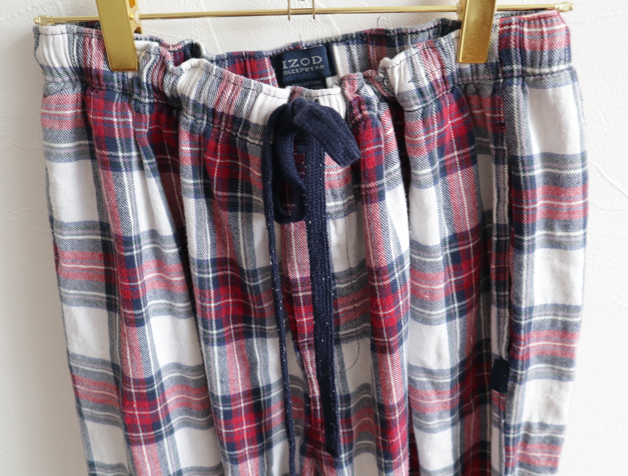 ホワイトとレッドのチェックのパジャマパンツ。
