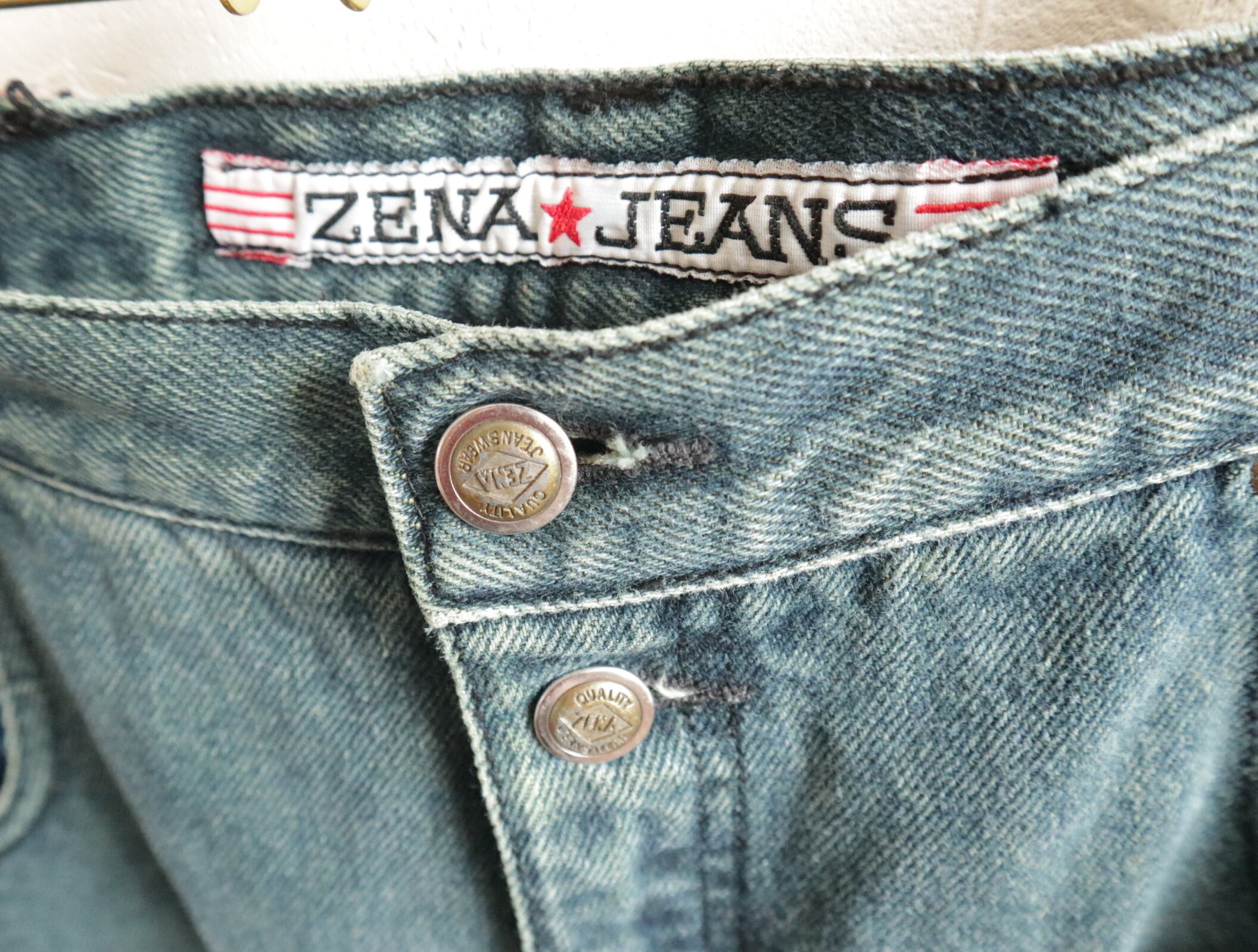 ボタンもリベットも全て「ZENA」というjeansブランドのロゴ入り。