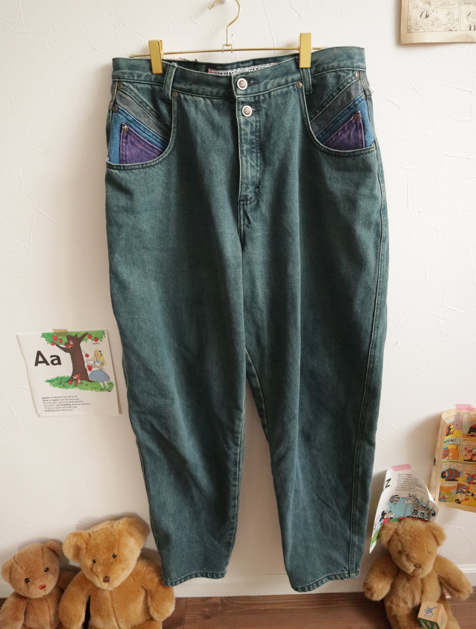 前と後ろ、どちらのポケットも変わったデザインでブルーとパープルの配色。