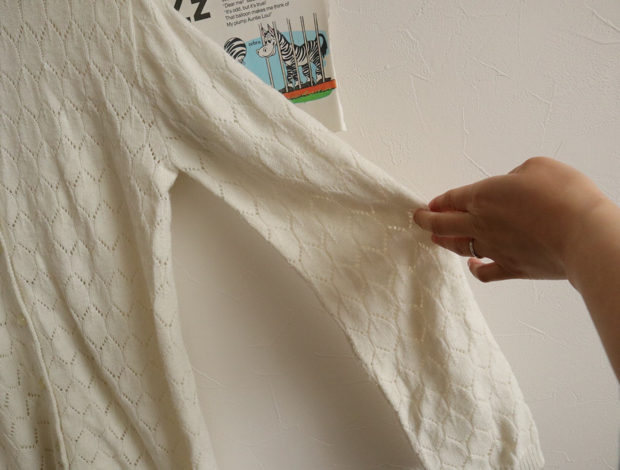 合わせやすいホワイトのカーディガンは春には1枚持ってたいアイテム。