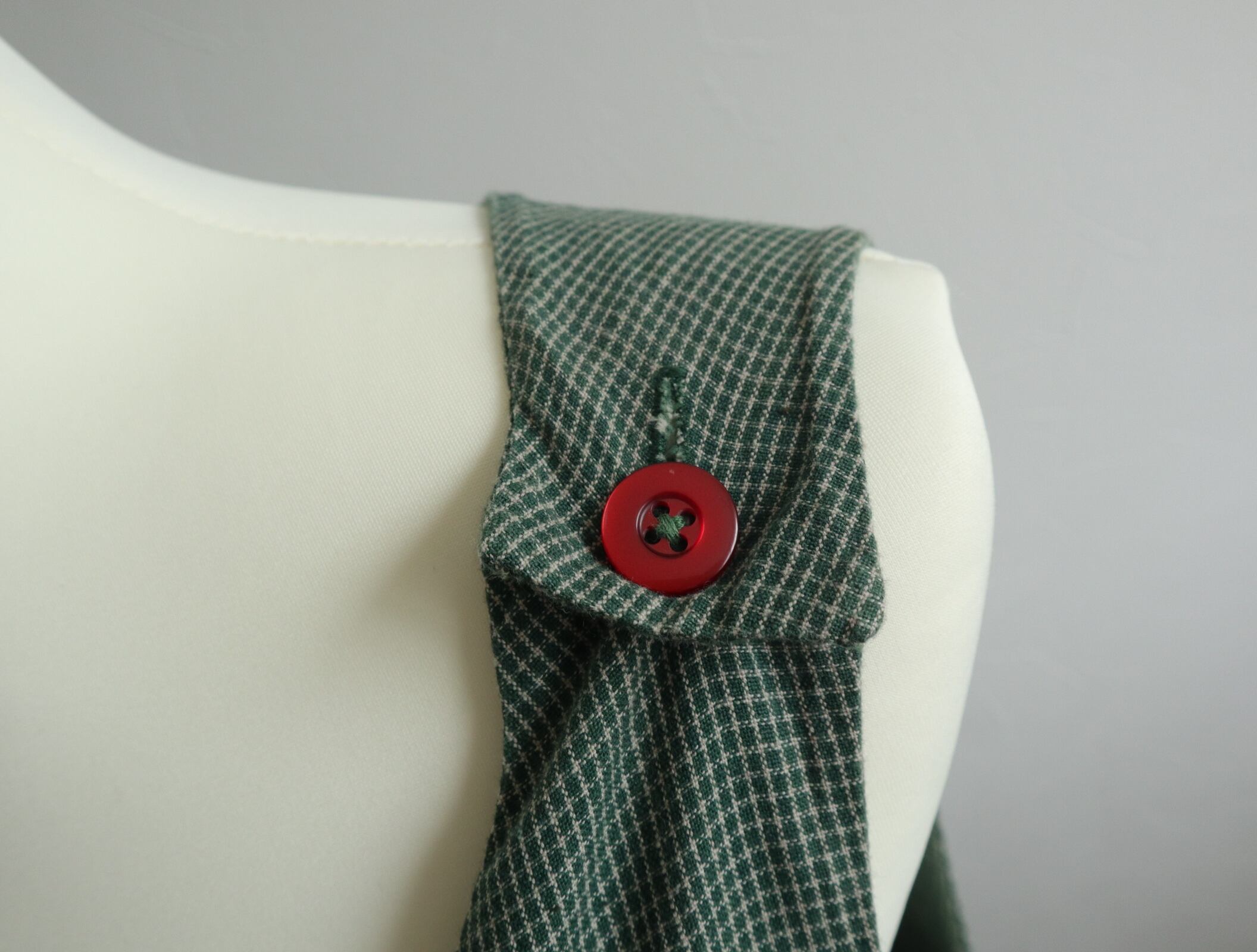 肩にはりんご飴みたいな色のツヤっとしたボタンがついています♡