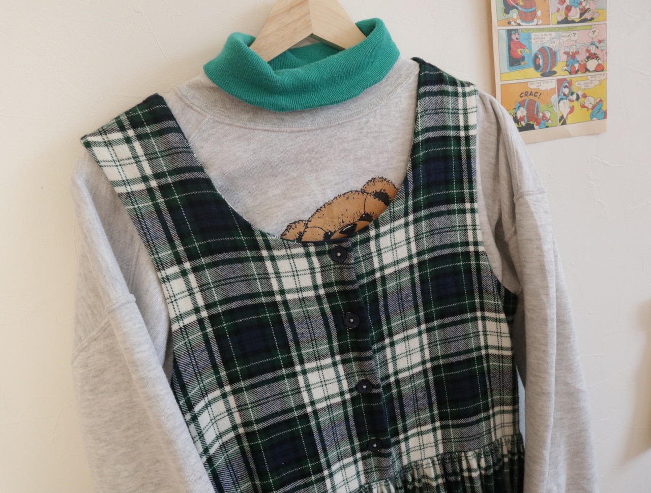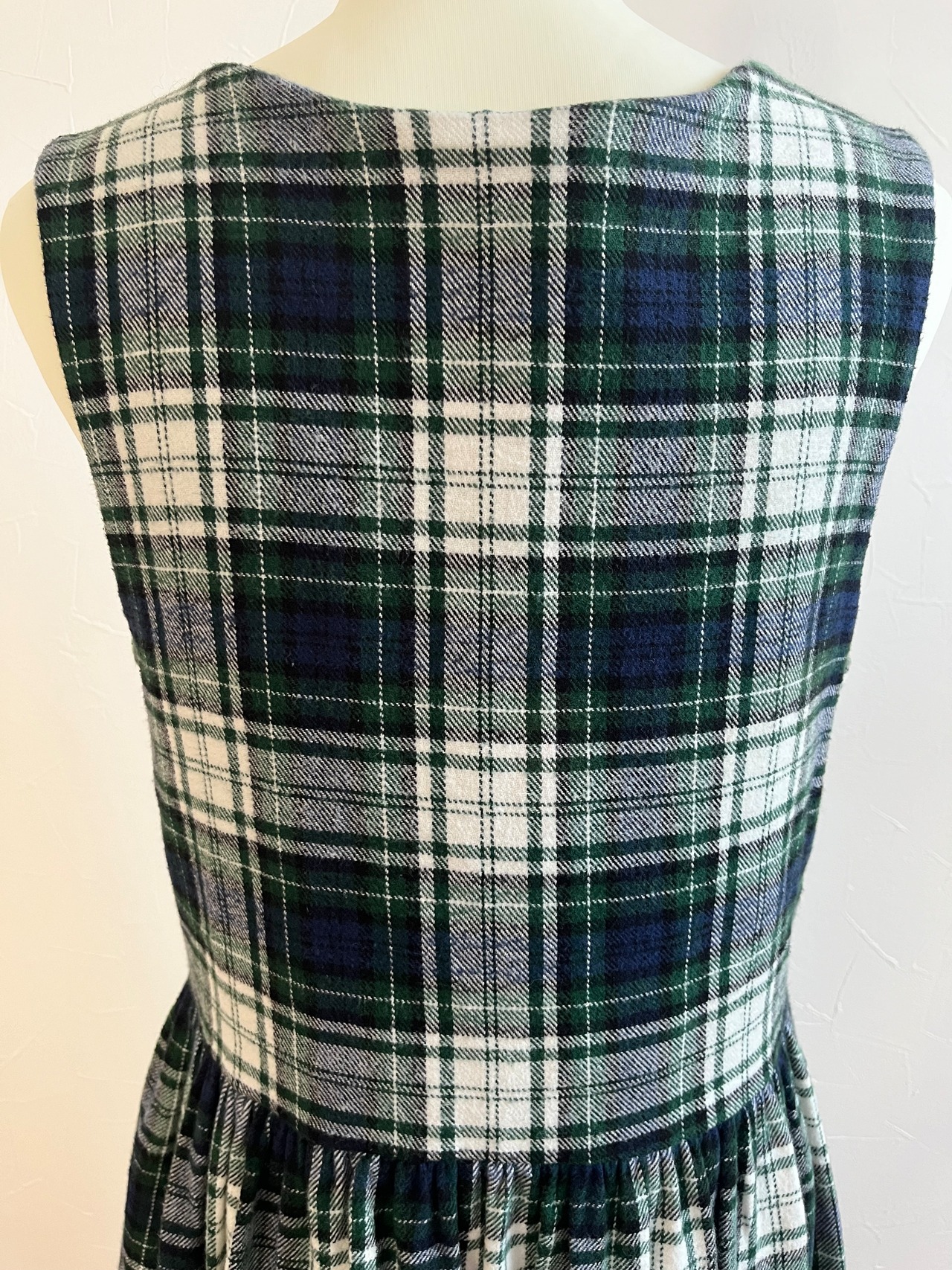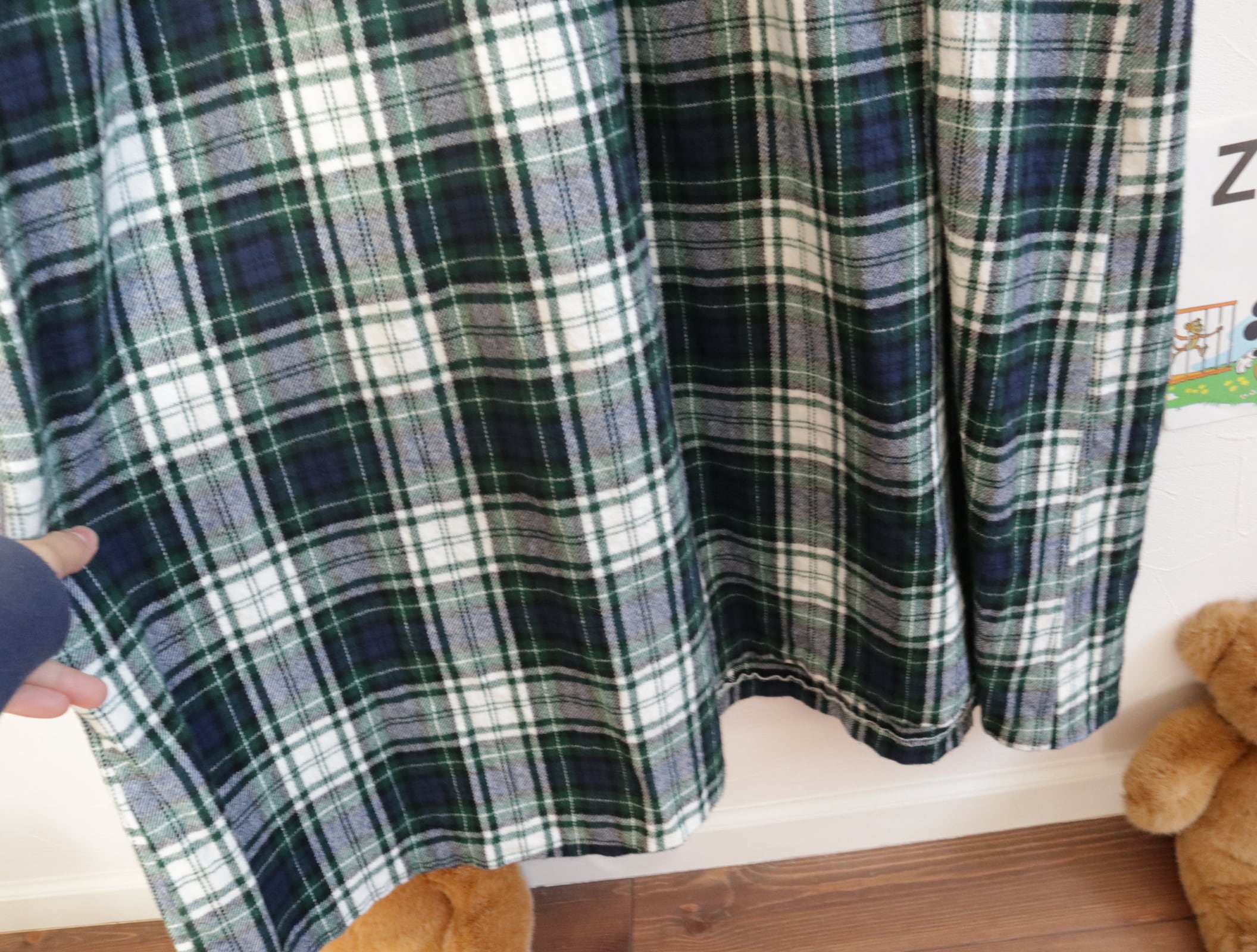 グリーンチェックの厚手のフランネル生地のワンピースです。